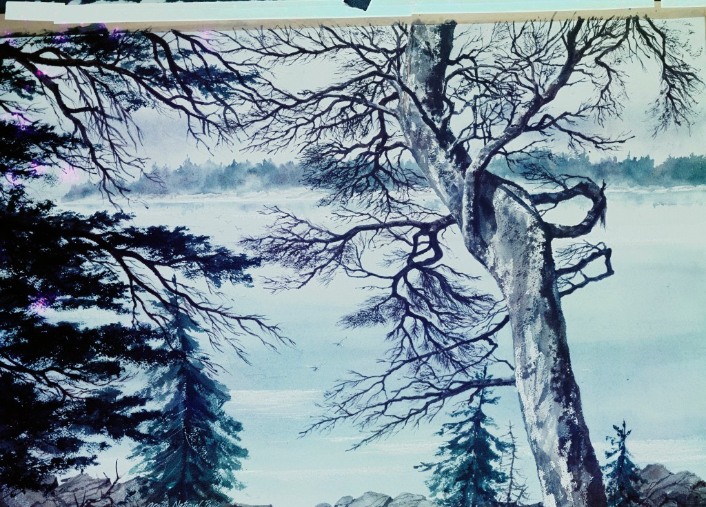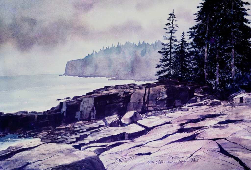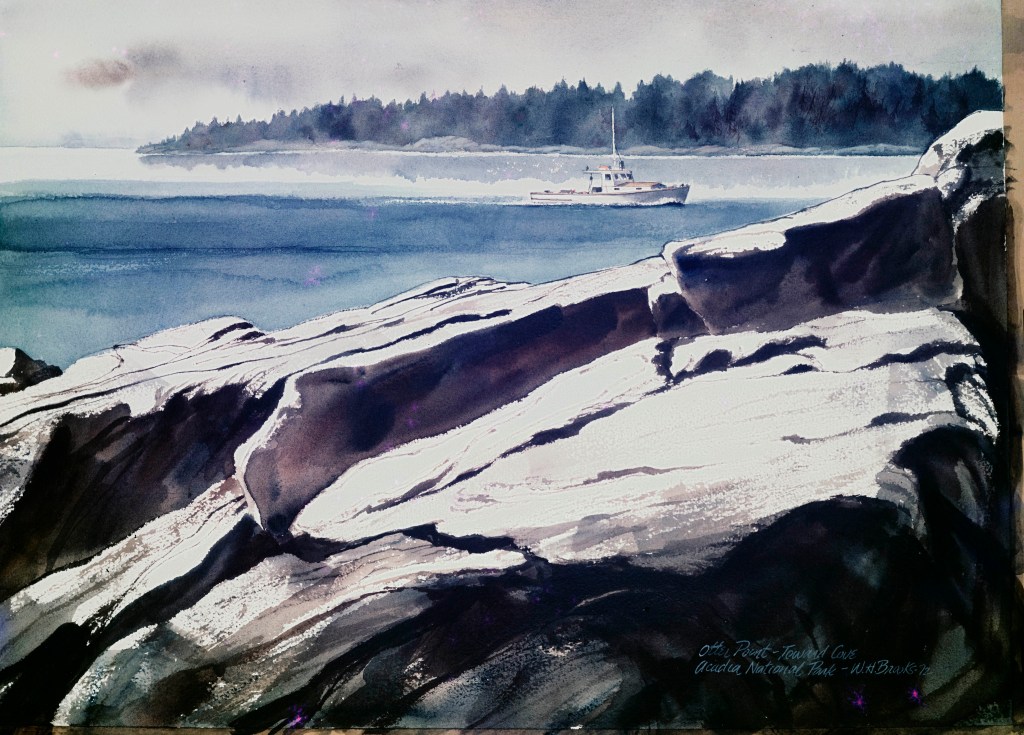 These paintings were done in 1973 based on sketches done during a trip to Acadia National Park in the summer of 1972. Walter visited Maine frequently, and the coast of Maine is the subject or background for many paintings.