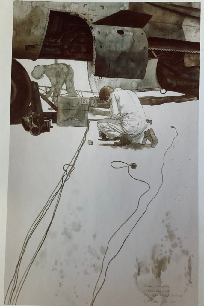 Walter made three trips as part of the Air Force Art Program (AFAPO). Many members of the Society of Illustrators participated in the AFAPO. See http://www.AFAPO.hq.af.mil for information on the program and location of paintings.
